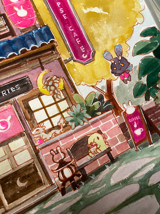 Eclipse Cafe - Original Watercolor Painting