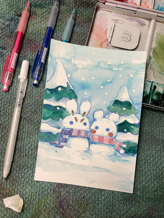 Snow Bunny Friends - Original Watercolor Painting